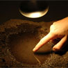 teilhaben – teilwerden, ein Prozess / Lavagestein, Wachs, Leucht-/Wärmequelle